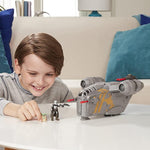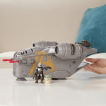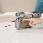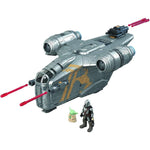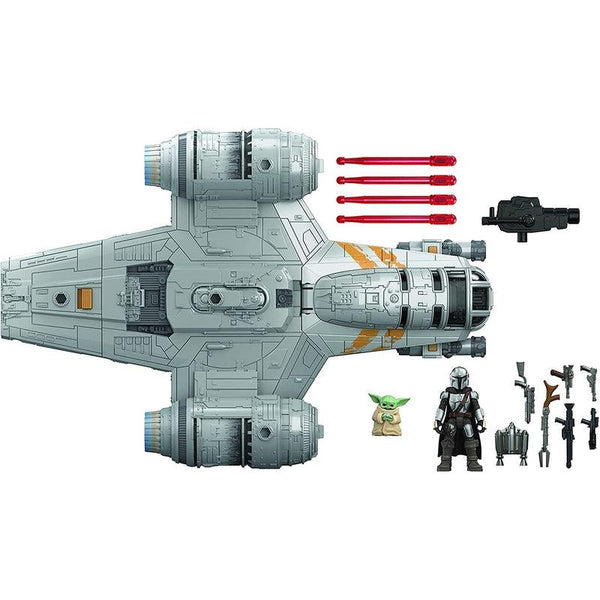 The Mandalorian is a formidable bounty hunter protecting The Child (Grogu), a mysterious alien pursued by bounty hunters on behalf of Imperial interests. The Razor Crest is his trusty transport and living quarters. Blast off into a dangerous galaxy with the Mandalorian and The Child (Grogu), affectionately referred to by fans as Baby Yoda, aboard his iconic ship, the Razor Crest! Imagine action-packed battles in the outer reaches with the Star Wars Mission Fleet Razor Crest Outer Rim Run figure and vehicle set. Featuring three projectile launchers, an opening cockpit that fits two figures, a removable top cover, interior play area, opening back hatch, weapons locker, six blaster accessories and a jetpack accessory, the child-friendly Razor Crest figure and vehicle set makes a great introduction to the Galaxy of Star Wars for children aged 4 and up! This is the way. Star Wars products are produced by Hasbro under licence from Lucasfilm Ltd. Hasbro and all related terms are trademarks of Hasbro.