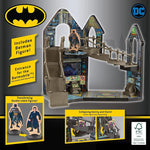 Batman World of Wooden Toys are made with durable and sustainable wood with eye catching and cool designs. Crafted for young Batman fans whilst staying true to the classic Batman styling, this fun range aims to stimulate a childs imagination during play. On the outskirts of Gotham City lies stately Wayne Manor, the domain of billionaire businessman, Bruce Wayne and the secret lair of his alter ego, superhero crime fighter Batman. This double-sided playset looks like Wayne Manor from the front but on the reverse is the Batcave where Batman maintains his equipment, develops new crime fighting tools and monitors the daily crime stats of the city beyond. The playset has control panels and a secret entrance for the Batmobile (Batmobile sold separately), and a collapsible gantry. Includes one wooden Batman figure. Made from environmentally responsible FSCcertified wood, (license C156989), and suitable for children aged 3 years and over. Batman World of Wood! Durable, Sustainable and Imaginative Play!