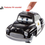 - This Disney Pixar Cars character Sheriff makes sounds from the movies which fans of the series will love and recite. Just press the roof to hear the character speak!
