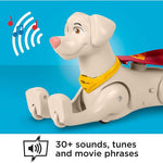 - Press his cape to "rev" up Krypto the Superdog for motorized action.