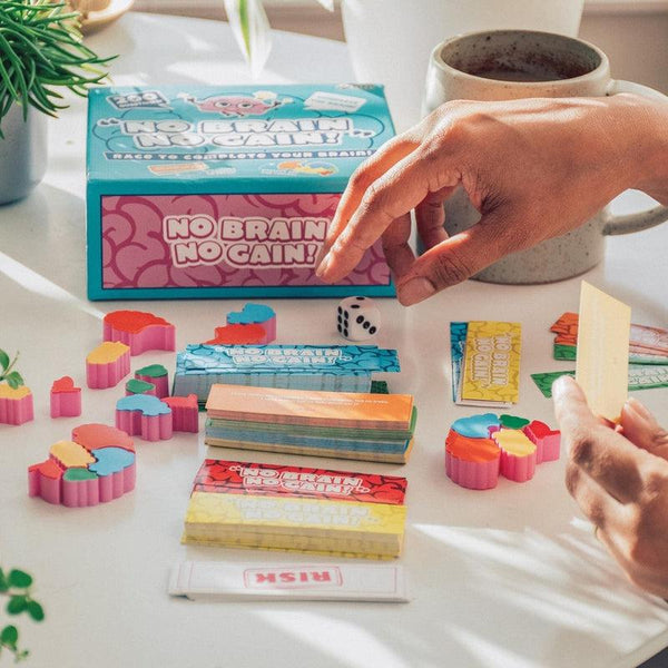 Players must answer colour-coded questions and complete tasks to earn a section of brain. The first player to build their brain wins!