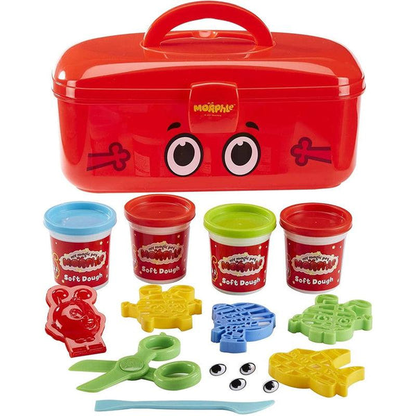 Morphle is an energetic little red magical pet, belonging to a little girl called Mila. Morphle can morph into anything: a sweet puppy, a giant truck, a cool dinosaur or anything that Milas playful mind can imagine! Bring the magical world of Morphle home with the Morphle Dough Carry Case! Open up the bright coloured Morphle themed carry case to discover lots of Morphle dough and accessories. Includes 4 x pots of dough, 4 plastic eyes, 4 character shaped press moulds, 1 morphle clamshell mould, 1 pair of safety dough scissors, and 1 dough modelling tool. Children will have hours of fun making their own Morphle dough creations! When playtime is over, everything stores inside the useful case for tidy play. Suitable for ages 3 years and over.
