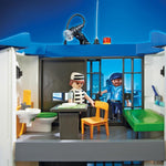 Keep your Playmobil City safe with this Playmobil Police Headquarters with Prison Set. The Playmobil Police Headquarters is fully equipped with lockable jail cells, control room and weapons store. The jail cell has a breakaway wall to help prisoners escape. The front gates slide open to allow vehicles through into the inner courtyard and there is a helipad on the roof.