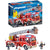 The Playmobil City Action Fire Ladder Unit is complete with an extendable and fully rotatable ladder, making sure the firefighters can reach any emergency. The vehicle can be raised with the built-in legs which slide out from underneath. Remove the roof from the driver's cab for quicker access or exit, and use the hose reel for those hard-to-reach fires. The vehicle also features lights and siren sounds for realistic playtime.