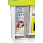 - Kids baking set composed of hotplate, sink, hood, oven, 1 fridge, 1 espresso machine, and storage spaces