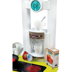 Description: The little Michelin Star Chef in your home will feel like a proper professional with this amazing detailed play kitchen. The colourful and contemporary design comes with a hotplate, sink, hood, oven, fridge, and espresso machine, plus cool storage racks. Comes with 25 play kitchen accessories included: 3 BBQ utensils, cutlery set, plates, glasses, cups, coffee capsules, frying pan, stewpot, plus dummy box. Kids will love the cool magic fish and steak (2 different coloured sides mean they can be 'grilled'). Kitchen toys for kids encourage fun and exciting role-play which develops and expands children's imagination and creativity. Watch as they enjoy endless hours experimenting and concocting their recipes and magical dishes! The accessories allow them to explore the various utensils and develop a love for food. Develop their organizational and planning skills! Kids love to keep their kitchens organized, and the many utensils and storage spaces mean they will constantly be perfecting their cooking set up. They will love planning and imagining recipes and meals for pretend guests!