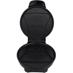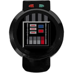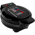 Makes two different size waffles: 6" waffles of Darth Vader's helmet or a larger 7" waffle by pouring the batter on the entire round plate that will create a large round waffle with Vader in the middle.