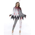 Description: Become a menacingly wicked jester clown with this blood stained costume. Your friends wont be laughing for long when you start with your deceptive tricks. No one will be safe from falling into your deadly grasp. It will only be you laughing come midnight.