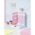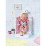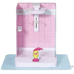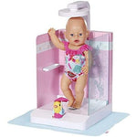 BABY born loves playing in water and with her Walk in Shower, bath time just got a whole lot more fun! Fasten BABY born into the clip and twist the duck to turn on the shower. Watch as real water flows from the shower head - BABY born can splish, splash in there all day! Does BABY born want a hot or cold shower The duck can be twisted either way as children can pretend to adjust the imaginary temperature. She is also joined by her cute character friends that are decorated across the tiles in the shower and on the plastic partition. The shower head is height adjustable so the Walk in Shower can fit dolls from 36cm to 43cm, which means the whole BABY born family can use the shower, plus it also comes with a blue bath mat in case of any spills from all the water-play! To fit dolls up to 43cm, suitable for children aged 3+. Requires 4 x AA batteries. For enhanced and long-lasting fun through imaginative play with dolls.