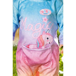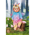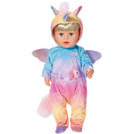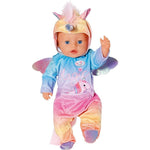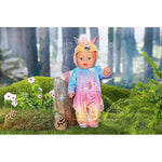 - UNICORN ONESIE - BABY Born believes in the magic of unicorns and loves dressing up in this super-colourful unicorn onesie. Featuring a fun rainbow print, fluffy mane, and horn this onesie is perfect for keeping her cosy whilst being oh so stylish!