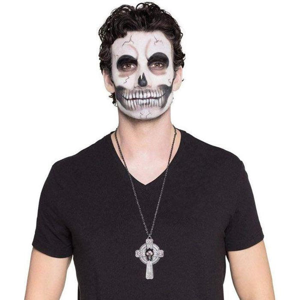 Description: Show your darker and mysterious side with this gothic skull and cross necklace, a great accessory to add to any gothic themed costume, darker styled outfit or vampire costume!!