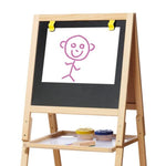 Description: This 2-in-1 wooden easel doubles up as a chalkboard and whiteboard, giving little ones multiple ways to express their creativity. Both sides wipe away in an instant, creating a fresh canvas for your budding artist to start all over again! Whether experimenting with coloured chalks or drawing quick doodles on the whiteboard, there’s never been a (cleaner!) way to create a masterpiece.
