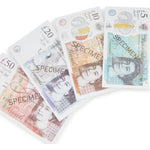 - Includes: 80 play notes (£5, £10, £20 and £50) and 40 play coins (1p, 2p, 5p, 10p, 20p, 50p and £1)