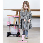 Description: Whether assisting grown-ups with a spring clean or tidying up any imaginary mess, this cleaning trolley comes with all the essentials (and more!). Featuring a mop with cloth, long-handled brush, hand brush, dustpan, detergent bottle and paper debris bag, everywhere will be spick and span in no time. Adults can now sit back and relax while their little ones take control of the home!