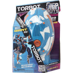 Torbot - stands 10 inches tall, 14.5 inches long, and 8 inches wide when fully assembled. TORBOT is known as being wise, cautious, committed, and a long time friend to Hyrobot, the leader of the GIGABOTS. He comes armed with shoulder mounted energy cannons - 1 plasma and 1 fusion.