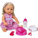 The original tearing and wetting function doll with closing eyes. 38cm height and now with longer hair and all new party dress outfit. Includes potty, pull up knickers, pacifier, bottle and hair brush.