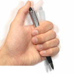 The pen seems to use the normal function where you press the top to reveal the ink tip. But beware - if you click on the top button, you'll get a shock, while if you twist the pen's base, a useable ballpoint tip will emerge.