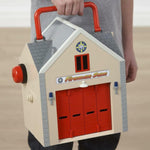 The portable fold-out set reveals the firefighters' headquarters and features a kitchen, utility room and fire engine turntable! Officer Steele and Sam figures also come with the set along with cool accessories such as a fire extinguisher and fireman's pole. Also includes a working alarm bell on the side for realistic fireman ring! Use the carry handle to take Sam and the Deluxe Fire Station to the next mission!