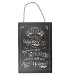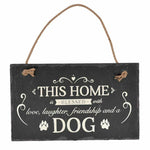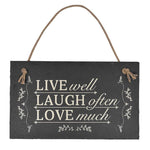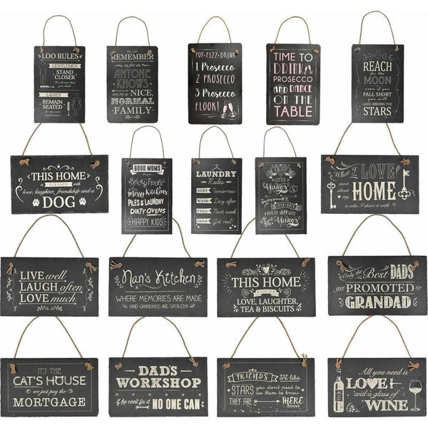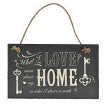 Novelty hanging slate plaque for the home. Rustic grey slate with a painted message and a twine hanging rope.