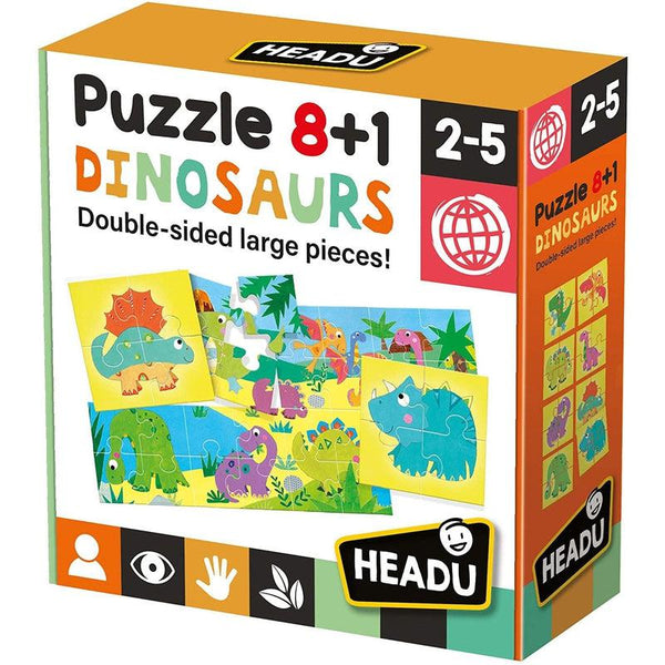 - Turn the pieces over to discover a 32 piece Dinosaur scene!