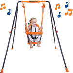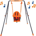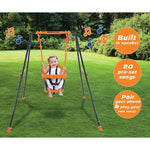 Get the kids into the garden for active play with the Hedstrom Musical Toddler Swing! Your little one can swing to the rhythm of your own beat with the in-built speaker that connects to your phone. There are also 20 pre-set lullabies to choose from. The swing is suitable for children aged from 6-36 months & features full UV resistant fabric lower body surround & high back support which encapsulates the child to ensure maximum security during play - there is also a squeeze & click 5-point safety harness. Heavy duty blow-moulded construction ensures the seat provides extra comfort & durability. The soft touch nylon straps can be adjusted in height as children grow in size & confidence, while the frame is constructed from heavy duty powder coated steel for stability &durability, and the entire product features UV resistance for longevity. For safety, the swing must be secured into the ground using the ground anchors that are provided - we also strongly recommend securing via concreting.