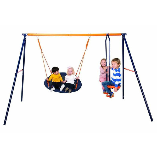 - Unique fabric nest swing. Includes ground pegs for extra stability