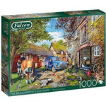 ˜The Blacksmiths Cottage is the title of this exquisitely illustrated 1000-piece Falcon de luxe jigsaw puzzle, which is part of the Cottages collection. This beautifully detailed image captures the atmosphere of a working blacksmiths cottage, bringing to life the sights and sounds associated with this ancient craft as three smiths forge metal, fit horseshoes and repair barrels on a bright, summers day. This stunning 1000-piece jigsaw puzzle has been illustrated by the very talented artist “ Dominic Davison. The finished size of the 1000-piece jigsaw puzzle measures 68 x 49cm (approximately) and has been produced using high-quality recycled board to ensure every jigsaw piece maintains its original shape and creates a poster-like finish.