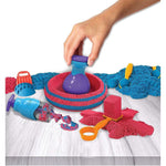 - Includes: 906 g of Kinetic Sand (453 g of red, 453 g of blue), 1 Twister with Ribboner and Grater Attachments, 1 Squisher, 1 Shaper, 1 Crinkler, 1 Scooper, 1 Slicer, 1 Dome, 1 Stacker, 1 Phone Stand, 1 Transformable Sand Box, 1 Backdrop, 1 Instruction Sheet