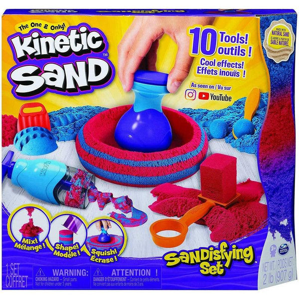 - The Kinetic Sand Sandisfying Set is perfect for creative and imaginative play and makes a great gift for kids aged 3 and up. Kinetic Sand is made from natural sand and is wheat, gluten and casein free, making it safe for play