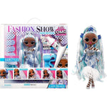 Missy Frost - Includes 1 LOL Surprise OMG Fashion Show Style Edition doll, transforming fashion outfits, hoop earrings, a hanger, a purse, glasses, hair clips, a necklace, a doll stand, a brush, a mannequin, a magazine, and a shopping bag.