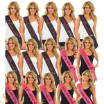 A selection of Hen Party sashes - Pink or Black with various contrasting desriptions