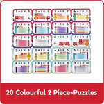 This first Numberblocks puzzle helps little ones learn basic addition and subtraction skills with their friends the Numberblocks. There are 10 addition and 10 subtraction puzzles featuring Zero to Ten. Each Numberblocks addition puzzle and Numberblocks subtraction puzzle has 2 pieces. Match the simple maths question to the correct answer piece to complete the puzzle. Each clever puzzle fits together in a unique way so there’s only one right answer. This gives children a sense of achievement as they figure out the answers themselves.