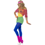 Get back to the 80's with this great ladies Lets Get Physical fancy dress outfit.This outfit is great for wearing to 80's fancy dress parties and hen do's. The costume includes a Leotard, Crop Top, Shorts and Headband.