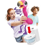 When Sherbets gotta go, hell sing his "Uh Oh, Gotta Go!" song. Place your interactive pet on the toilet and hell poop into the bowl. The Little Live Pets Gotta Go Flamingo loves to repeat what you say. Record and listen as he repeats your funny phrases!