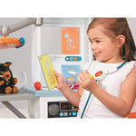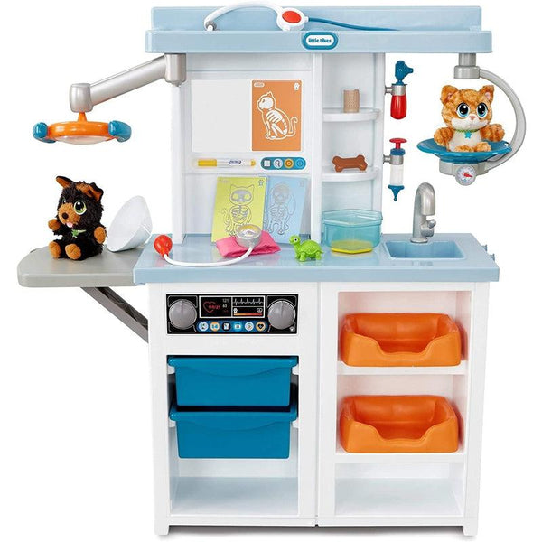 It'll inspire their imagination with 2 bins and 2 cages, a weighing scale with working dial, folding check-up counter with adjustable overhead light, a translucent monitor which can also be drawn on with the included marker pen and sink.