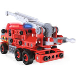 - The Meccano Junior Rescue Fire Truck is a STEAM building kit for kids aged 5 and up. 3 AAA batteries required (not included). With Erector by Meccano, building is just the beginning
