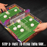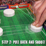 Description: Penalty Shoot Out is the fast, addictive head to head, goal scoring game. Using the clever box which folds out to become your pitch, each player positions their balls on their side of the half way line. When kickoff starts, who can flick all the balls in their half through the goal into their opponent’s half? Sounds easy, but not when your opponent is flicking back just as fast!