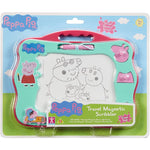Description: Have hours of drawing fun with this lightweight, magnetic drawing tablet. Features classic Peppa Pig styling and fun Peppa shaped stampers. Draw and erase again and again! Use the magnetic drawing pen and stamps to make your own Peppa Pig creation! It's the perfect size for small hands to use, and is suitable for ages 3 years and over. Mess free and easy to use, this is the perfect on-the-go toy to take on car journeys or out and about with you, wherever you go!