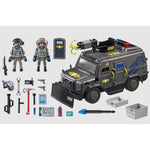Join the action with the Playmobil Tactical Unit All-Terrain Vehicle! This exciting playset features a Playmobil SWAT truck with light and sound, two figures, and plenty of police accessories. The truck’s all-wheel suspension and dozer blade make it perfect for rough terrain, while the roof turret fires grappling hooks or water arrows. Ideal for kids aged 5 and up, this Playmobil police truck provides endless hours of imaginative play.