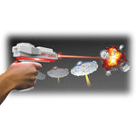 - No TV, screens of sensors necessary. Just point ProjeX at a blank wall, grab the blaster, aim, and blast the targets!