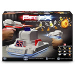 When its lights off, its game on with the ProjeX Animated Projecting Game Arcade. No TV, screens of sensors necessary. Just point ProjeX at a blank wall, grab the blaster, aim, and blast the targets! ProjeX lets you test your speed and skill as you blast the moving animated targets that it projects right onto your wall! Three interchangeable animated target image slides let you project ducks, targets or UFOs each with its own unique sound effects and movements! Target Pointers on both blasters help your aim. There are five different built-in games and 3 skill levels from beginner to advanced and expert. Play solo, head-to-head or in Co-Op Mode, where two players team up to get the highest combined score. Just set the ProjeX Animated game arcade base on a low table, with the projector heads aimed at the wall, load 1 of the 3 included Target Slides and select the game you wish to play! The projector should be 5 feet from the wall and works best on a light-coloured wall. Set includes 1 x ProjeX Animated Game Unit, 2 ProjeX Blasters, 3 x Target Image Slides and 1 x Instruction Leaflet. Requires 4 x AA Batteries (not included).