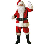 Description: Bring smiles to the faces of excited children at Christmas with this deluxe Father Christmas costume, the Santa suit comes complete with, Hat, Wig, Beard, Jacket with zipper front, trousers, belt and boot tops, the suit is in a red velvet material with the classic white fur trim.