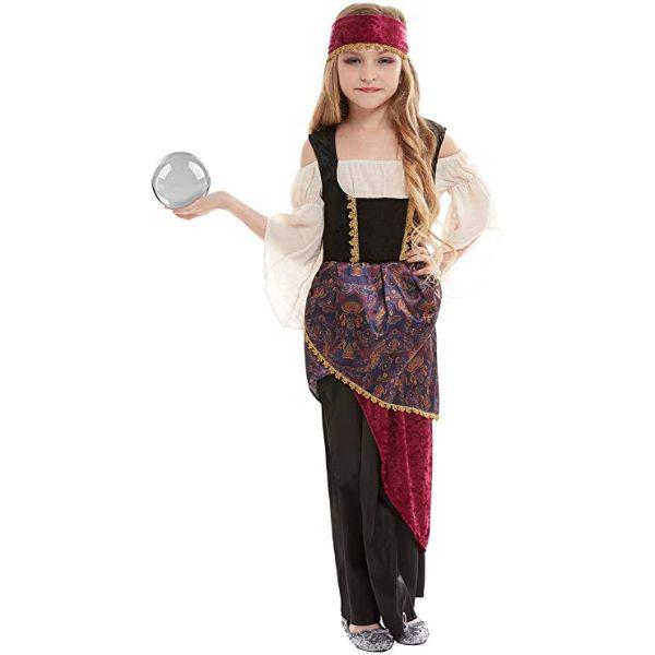 Description: What does the future hold for your little one, are they destined to look at the palms of others or stare into the crystal ball and tell the futures of the paying guest at the circus. This costume is perfect to dress your fortune teller wanna be in.