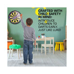 - Contents: Two-sided magnetic board / 12 safe magnetic darts / Throw line (to mark the "oche" where kids throw from) / Wall mounting kit