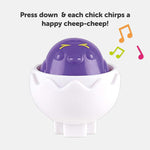 Listen when you press down - each chick chirps a happy cheep-cheep.