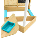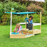 - Includes integral black board and craft play area with removable splash bowl and wooden play surface