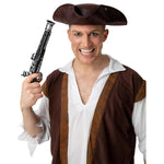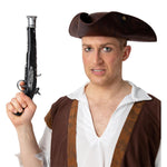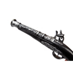 Description: Defend yourself from an army of party goers with this plastic pirate gun from Wicked Costumes. The replica flintlock pistol has a black barrel and handle, with silver trigger, hammer and cap. It is decorated with silver leaf pattern embossing for an authentic looking weapon of choice for any Caribbean pirate or militia man. The plastic pistol is 35cm long and is the ideal accessory to complete your pirate, militia, buccaneer, 17th and 18th century navy captain, army officer and lots more fancy dress costumes.