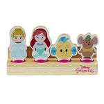 Description: Disney Princess World of Wooden Toys are made with durable and sustainable wood with eye catching and beautifully detailed designs. Crafted for young Disney Princess fans whilst staying true to the classic Disney Princess styling, this fun range aims to stimulate a child’s imagination during play. This 4-pack of figures feature ‘drop n play’ feet so they can be easily slotted into the wooden bench provided to promote hand-eye coordination.