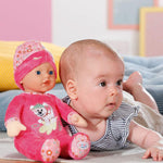 Description: Baby Born Sleepy is the cutest little friend for your baby. The Sleepy doll is the ideal, "my first doll" for your baby, as it’s suitable from birth! With the integrated rattle, she’ll keep your baby entertained in the stroller or the crib. Her pink, patterned hat can be pulled over her eyes at snooze time or used for a game of peek-a-boo. Plus, the super-soft body makes her perfect for cuddles all night long.