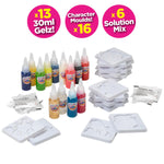 - Includes: 3 x 30ml coloured gelz, 2 different characters, 2 packets of solution mix and reusable solution tank